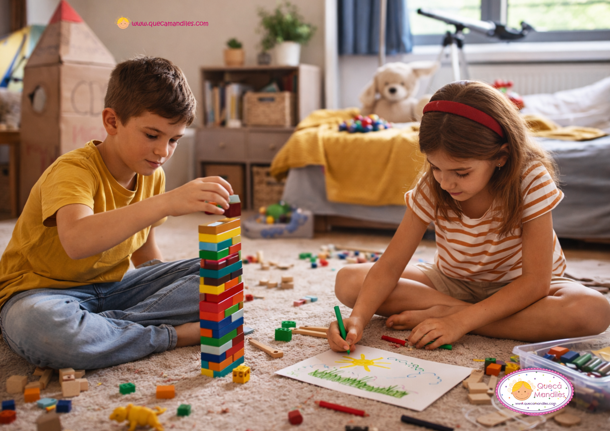 - Hermanos que, tras discutir por aburrimiento, encuentran una forma de jugar juntos.