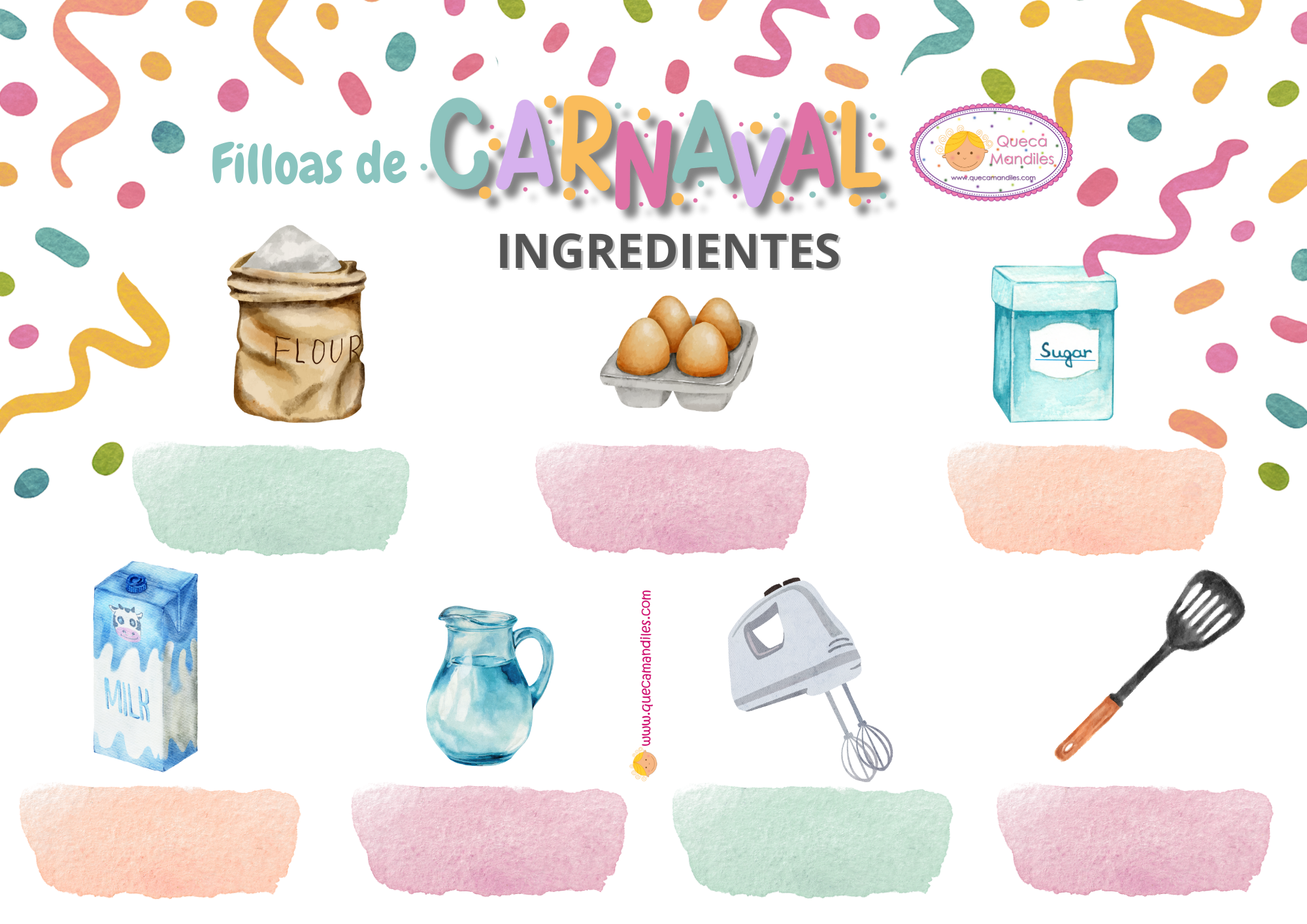 Vamos a disfrutar de un taller de cocina carnavalesca, donde llevaremos a cabo la receta y degustaremos las filloas normales o con nutella y, después del recreo, pondremos una puesta en común de lo que hicimos y haremos una pequeña ficha sobre los ingredientes que necesitamos antes.